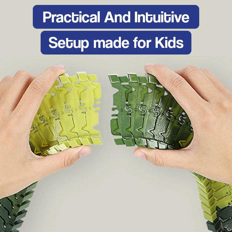 Expand your child's motor skills, hand-eye coordination, and social skills with this Dinosaur Adventure Roller Coaster Set.